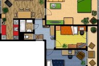 Celková podlahová plocha bytu činí 75 m2. Byt se nachází v 5. podlaží devíti podlažního bytového domu s výtahem a má bezbariérový přístup.